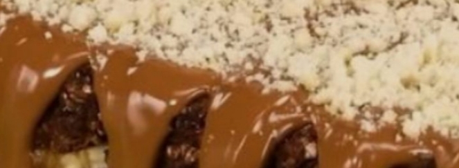Here’s the recipe for the No-Bake Chocolate Oat Bar with Milka (or any milk chocolate) — rich, chewy, and super easy to make 🍫✨🍫 Ingredients:250 g Milka chocolate (or any milk chocolate bar)2 cups rolled oats100 g butter (unsalted)½ cup brown sugar½ cup honey or maple syrup1 tsp vanilla extractOptional: crushed nuts, banana slices, or caramel for filling🧑🍳 Instructions:Prepare the base:In a saucepan, melt the butter, brown sugar, and honey over low heat.Stir until smooth and slightly thickened (about 3–4 minutes).Remove from heat and add the vanilla and rolled oats. Mix well to coat evenly.Assemble:Line a rectangular mold or tray with parchment paper or plastic wrap.Pour half of the oat mixture into the mold and press it down firmly.Optionally, add a layer of sliced bananas, nuts, or caramel in the center.Then place the Milka chocolate bar on top as shown in your photo.Cover with the remaining oat mixture and press gently to shape it evenly.Chill:Refrigerate for at least 1–2 hours (until firm).Finish:Once set, remove from the mold.Drizzle melted chocolate over the top and sprinkle with crushed nuts or oats for decoration.🍽️ Serving Tips:Serve chilled or at room temperature.Perfect as a snack, dessert, or energy bar.