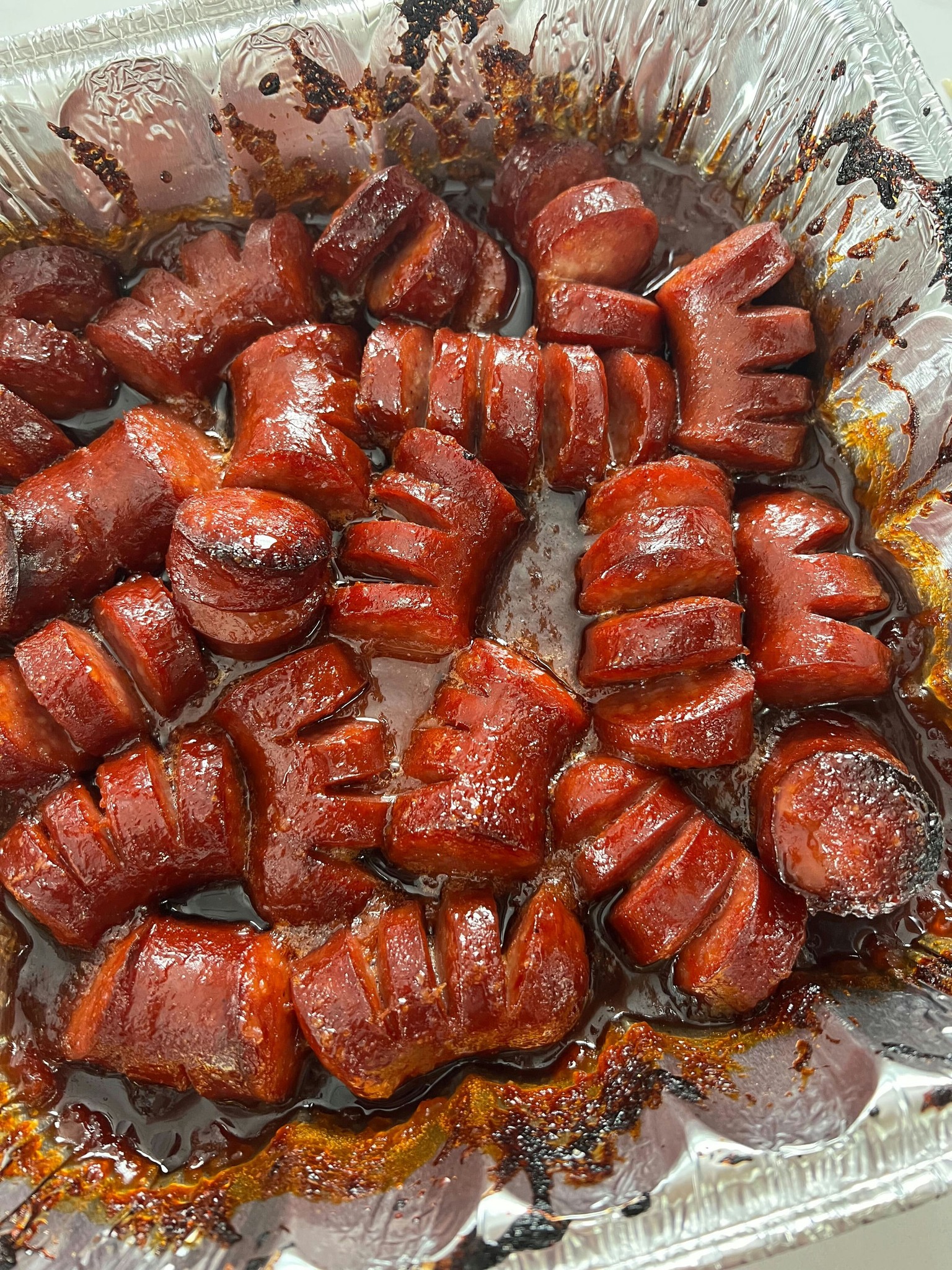 These Candied Kielbasa Bites are an irresistibly delicious appetizer, offering a perfect balance of sweet, savory, and a hint of tang. Sliced kielbasa is “hasselbacked” to create extra surface area for a sticky, caramelized glaze made from brown sugar, ketchup, and horseradish, ensuring every bite is packed with flavor.