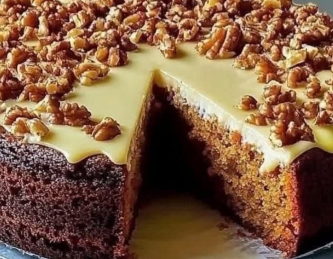 Ingredients:For the Cake:2 cups all-purpose flour2 teaspoons baking powder1 ½ teaspoons baking soda1 teaspoon ground cinnamon½ teaspoon ground nutmeg½ teaspoon ground ginger½ teaspoon salt1 cup granulated sugar1 cup brown sugar, packed4 large eggs1 cup vegetable oil½ cup unsweetened applesauce1 teaspoon vanilla extract3 cups grated carrots (about 3–4 medium carrots)1 cup chopped walnutsFor the Cream Cheese Frosting:8 oz (1 block) cream cheese, softened½ cup unsalted butter, softened4 cups powdered sugar1 teaspoon vanilla extract1–2 tablespoons milk (for desired consistency)PREPARATION:Step 1: Prepare the BatterPreheat your oven to 350°F (175°C). Grease and flour two 9-inch round cake pans or line them with parchment paper.In a medium bowl, whisk together the flour, baking powder, baking soda, cinnamon, nutmeg, ginger, and salt. Set aside.In a large bowl, whisk together the granulated sugar, brown sugar, eggs, vegetable oil, applesauce, and vanilla extract until smooth.Gradually add the dry ingredients to the wet ingredients, mixing just until combined.Fold in the grated carrots and chopped walnuts.Step 2: Bake the CakeDivide the batter evenly between the prepared cake pans.Bake in the preheated oven for 30–35 minutes, or until a toothpick inserted in the center comes out clean.Let the cakes cool in the pans for 10 minutes, then transfer them to a wire rack to cool completely.Step 3: Prepare the Cream Cheese FrostingIn a large mixing bowl, beat the cream cheese and butter until smooth and creamy.Gradually add the powdered sugar, one cup at a time, beating well after each addition.Mix in the vanilla extract and enough milk to reach your desired frosting consistency.Step 4: Assemble the CakePlace one cake layer on a serving plate and spread a generous layer of frosting on top.Add the second cake layer and frost the top and sides of the cake.Decorate with additional chopped walnuts or grated carrots if desired.Tips for the Best Carrot Walnut CakeUse Fresh Carrots: Freshly grated carrots provide the best texture and flavor. Avoid pre-shredded carrots, as they are often too dry.Customize the Mix-Ins: Add raisins, shredded coconut, or crushed pineapple for additional flavor and texture.Chill the Frosting: If the frosting becomes too soft, chill it in the refrigerator for 10–15 minutes before spreading.Nutritional Information (Per Serving)Calories: ~420Carbohydrates: ~54gProtein: ~5gFat: ~20gFiber: ~2gWhy You’ll Love This RecipeThis Carrot Walnut Cake is moist, flavorful, and packed with the perfect blend of spices. It’s a versatile dessert that works just as well for a birthday celebration as it does for a casual weekend treat. The creamy cream cheese frosting takes it to the next level, making every bite irresistibleEnjoy !