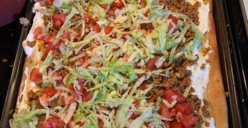 Ingredients 1 lb. ground beef 1 envelope taco seasoning mix 2 (8 oz.) cans Pillsbury crescent rolls 1 (16 oz.)…