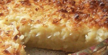 Ingredients 1/2 cup Bisquick3/4 cup sugar4 eggs2 cup milk1 cup flaked coconut1 tsp. vanilla1 TBS. butter, softened Directions Combine all…