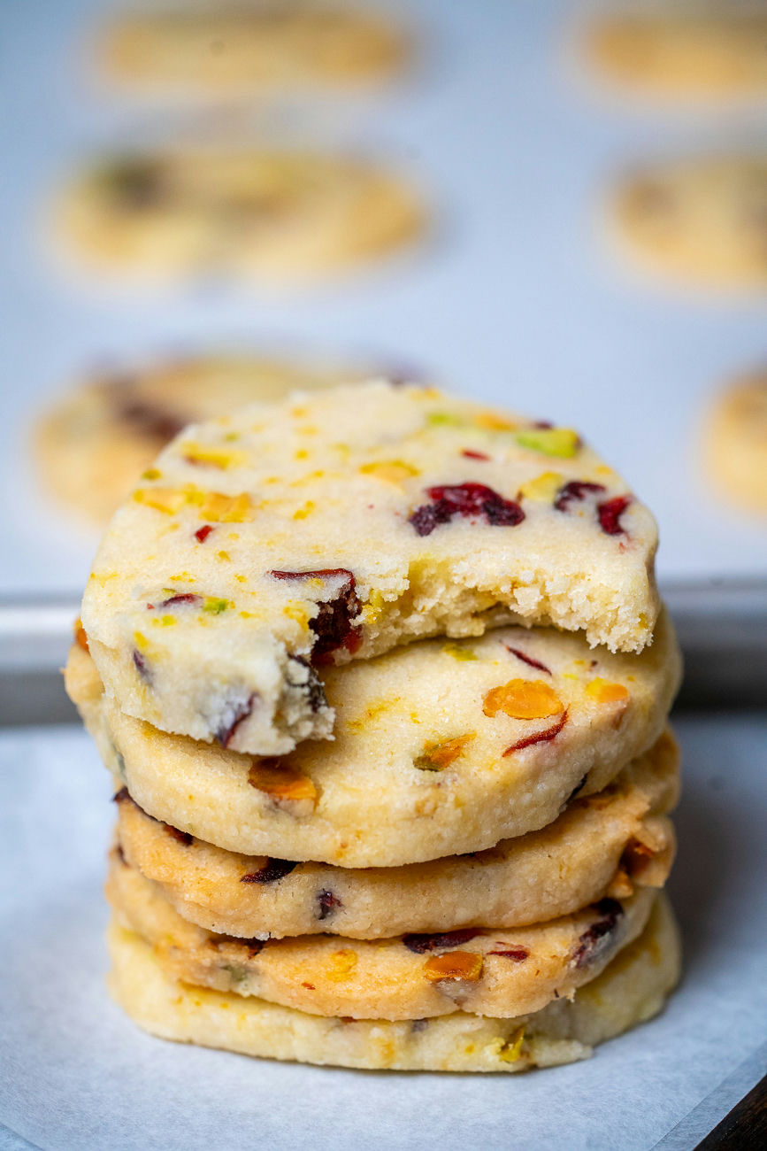 They keep that signature shortbread texture but add a burst of tart dried cranberries, fragrant orange zest, and the sweet nuttiness of pistachios. The result? A cookie that’s festive without being fussy—and a welcome break from the sugar overload of typical holiday treats.