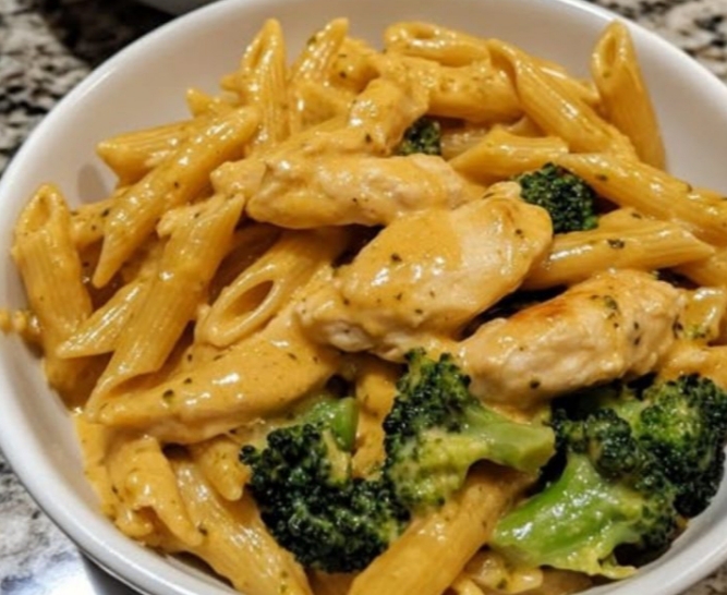 rich, satisfying one-pan pasta dish that brings together tender chicken, crisp-tender broccoli, and al dente penne in a luxuriously creamy Parmesan sauce. Infused with garlic, Italian herbs, and a hint of paprika, this 30-minute meal is comfort food at its finest—perfect for busy weeknights when you want something hearty, healthy, and deeply delicious.Why You’ll Love This RecipeThis isn’t just another creamy pasta—it’s elegant simplicity on a plate. With juicy chicken, vibrant green broccoli, and a silky sauce made from heavy cream and freshly grated Parmesan, every bite feels indulgent yet balanced. It comes together in one pot and one skillet, minimizing cleanup while maximizing flavor.Perfect for:Weeknight dinners (ready in 30 minutes!)Meal prep and leftoversFamily-friendly mealsFans of fettuccine Alfredo with a protein boostIngredients (Serves 4)For the Pasta & Veggies12 oz (340g) penne pasta (or any short pasta like rigatoni or fusilli)2 cups (150g) broccoli florets, cut into bite-sized piecesSalt, for boiling waterFor the Chicken & Sauce2 tbsp (30ml) olive oil1 lb (450g) boneless, skinless chicken breast, diced into ½-inch cubes3 cloves garlic, minced2 cups (480ml) heavy cream (do not substitute with milk—it won’t thicken properly)1 cup (100g) freshly grated Parmesan cheese (not pre-shredded—it clumps!)1 tsp Italian seasoning½ tsp paprika (smoked or sweet)Salt and freshly ground black pepper, to tasteFor Finishing Touches¼ cup (10g) fresh parsley, chopped (optional, for color and freshness)Step-by-Step Instructions1. Cook the Pasta & BroccoliBring a large pot of salted water to a boil.Add penne and cook according to package directions until al dente.During the last 3 minutes of cooking, add broccoli florets to the pot.Drain and set aside—do not rinse.2. Sear the ChickenIn a large skillet over medium heat:Heat olive oil.Add diced chicken, season with salt, pepper, and paprika.Cook 6–7 minutes, stirring occasionally, until golden brown and cooked through.Remove chicken and set aside.3. Sauté the GarlicIn the same skillet (don’t wipe out the fond!):Add minced garlic and sauté 1 minute, until fragrant but not browned.4. Make the Creamy SauceReduce heat to medium-low.Pour in heavy cream and simmer gently 2–3 minutes, stirring often.Stir in Parmesan cheese, Italian seasoning, and a pinch more salt and pepper.Cook 3–4 minutes, stirring, until sauce thickens slightly and coats the back of a spoon.5. Combine EverythingReturn chicken to the skillet.Add drained pasta and broccoli.Toss everything together gently until fully coated in sauce.6. Serve Warm & DeliciousDivide among bowls.Garnish with chopped fresh parsley and an extra sprinkle of Parmesan if desired.Serve hot with:A crisp green saladGarlic bread or dinner rollsLemon wedges on the side for brightnessYou Must KnowUse freshly grated Parmesan —pre-shredded contains anti-caking agents that make sauce grainy.Don’t overcook the broccoli —cooking it with the pasta keeps it bright and tender-crisp.Heavy cream is essential —for richness and proper sauce texture.Tastes better the next day! Flavors meld beautifully overnight.Freezer-friendly? Not recommended—cream-based sauces can separate when thawed.Storage TipsStore leftovers in an airtight container in the fridge for up to 4 days.Reheat gently on the stove over medium-low heat, stirring often. Microwave works but stir frequently.Freeze only if necessary: Up to 2 months, but expect slight texture changes.Ingredient SubstitutionsChicken breast Thighs, shrimp, or tofu Adjust cook time as neededHeavy cream Half-and-half + 1 tbsp butter Lighter option (simmer carefully)Penne Any short pasta or zucchini noodles (GF) Dietary preferencesBroccoli Cauliflower, spinach, or peas Seasonal swapsOlive oil Avocado oil or butter For different richnessServing SuggestionsServe family-style in the skillet for rustic charm.Great for potlucks—bring the whole pan!Double the batch and freeze half for future comfort.Pack in lunchboxes (reheat safely).Cultural ContextInspired by Italian-American home cooking and modern “dump-and-stir” pasta trends, this recipe honors the joy of turning simple ingredients into something deeply satisfying. Found at weeknight tables, dorm rooms, and creative kitchens alike, it celebrates how a few quality ingredients—when combined with care—become something truly special.Pro TipsDouble the recipe? Yes—perfect for feeding a crowd. Use a larger skillet or work in batches.Want more heat? Add red pepper flakes or cayenne to the sauce.Make ahead: Chop chicken and veggies 1–2 days ahead. Store separately.Label your dish: People will ask for the recipe.Say “ready?” before serving —it’s part of the ritual.Frequently Asked QuestionsQ: Can I use frozen broccoli?A: Yes—but thaw and pat dry first to avoid watery sauce.Q: Why did my sauce break?A: Likely due to high heat or cold additions. Keep heat low and warm cream before adding.Q: Is this gluten-free?A: Only if using GF pasta and verifying all ingredients.Q: Can I make it in the oven?A: Not ideal—but you can bake as a casserole with extra cream for 20 mins at 375°F.Q: Can I air fry it?A: No—but reheat individual portions at 375°F for 6–8 mins.Allergy InformationContains: dairy (cream, Parmesan), wheat (in pasta).Gluten-free option: Use certified GF pasta.Nut-free: This recipe is naturally nut-free.Always check labels—especially on processed cheeses and seasonings.Nutrition Facts (Per Serving – Approximate)Based on 4 servingsCalories: 680Fat: 38gSaturated Fat: 18gCarbohydrates: 52gFiber: 4gSugar: 4gProtein: 34gSodium: 480mgThis pasta doesn’t shout. It sizzles softly in the skillet, creamy and inviting, saying everything a great meal should: “Grab a fork. Share me. This is good.” That’s how the best ones begin—not with silence, but with chicken, creaminess, and someone who says, “Let’s make it together.”
