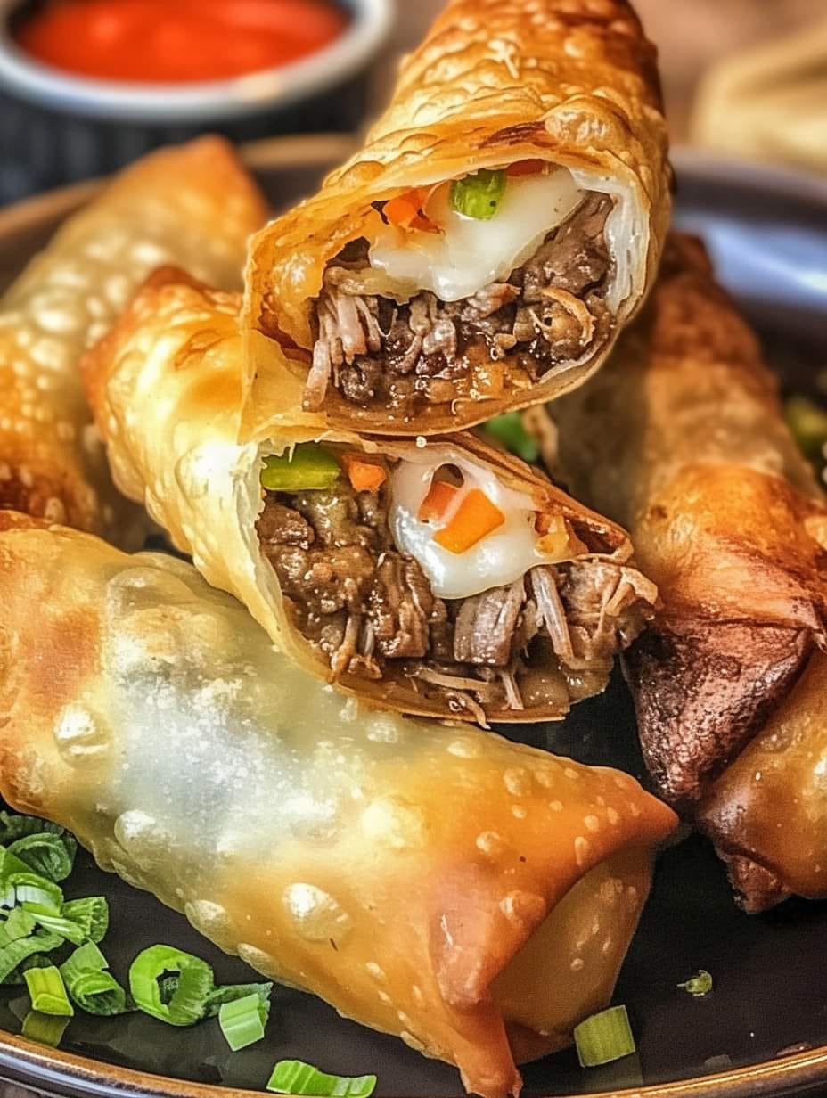 🥟 Crispy, Cheesy Philly Cheesesteak Egg Rolls 🧀