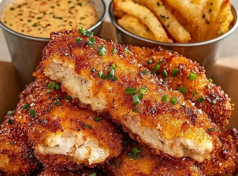 These crispy Parmesan chicken tenders are a perfect blend of crunch and flavor, ideal as an appetizer, snack, or main dish. Coated in a golden, cheesy crust and served with dipping sauces, they are irresistible to both kids and adults alike. Pair them with fries and your favorite sauces for a complete, crowd-pleasing meal!
