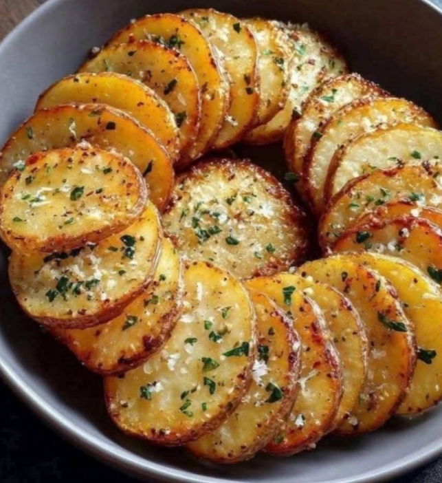 Warning: These garlic-herb sliced potatoes are so addictive, they might steal the spotlight from your main dish! With their golden crispy edges, soft buttery centers, and irresistible seasoning, these accordion-style potatoes are about to become your new obsession.Perfect for busy weeknights or impressive enough for guests, this recipe delivers restaurant-quality results with minimal effort. Plus, that crispy, caramelized top? Pure magic!Why This Recipe Goes Viral Every Time✅ Crispy outside, fluffy inside – The perfect texture combo✅ Easier than fries or hasselback potatoes – Just slice, season, and bake!✅ Customizable flavors – Try cheesy, spicy, or herbed versions✅ Crowd-pleasing side – Kids and adults go crazy for these✅ Meal-prep friendly – Reheats perfectly in the air fryerIngredients You’ll Need(Serves 4 as a side dish)4 medium russet potatoes (or Yukon Gold)3 tbsp melted butter (or olive oil)3 cloves garlic, minced1 tsp salt½ tsp black pepper1 tsp paprika (smoked or regular)1 tsp dried thyme (or rosemary)½ cup shredded Parmesan (optional but highly recommended!)2 tbsp fresh parsley, chopped(Optional add-ins: crispy bacon bits, cheddar cheese, or a sprinkle of chili flakes!)Step-by-Step Instructions1. Prep the PotatoesPreheat oven to 400°F (200°C).Scrub potatoes clean (leave skins on for crispiness!).Slice carefully: Place a potato between two chopsticks or wooden spoons (this prevents cutting all the way through). Make thin slices (about ¼-inch apart).2. Season & Butter UpIn a bowl, mix melted butter, garlic, salt, pepper, paprika, and thyme.Brush generously over and between potato slices.3. Bake to PerfectionPlace potatoes on a parchment-lined baking sheet.Bake for 40 minutes, then brush with more butter.Sprinkle Parmesan (if using) and bake 10-15 more minutes until golden and crispy.4. Serve & Devour!Garnish with fresh parsley.Serve hot with sour cream, ranch, or garlic aioli for dipping!Pro Tips for the Best Sliced Potatoes🔥 Extra crispy? Broil for 2-3 minutes at the end!🧈 Butter vs. oil: Butter = richer flavor; oil = crispier result.🍴 Cutting hack: Use a mandoline (with guard!) for even slices.🧀 Cheesy upgrade: Stuff slices with cheddar before baking.FAQsCan I use sweet potatoes?Yes! Adjust baking time (they may cook faster).How do I store leftovers?Keep in the fridge for 3 days – reheat in the air fryer for best texture.Can I make these ahead?Prep & slice potatoes, then store in water until ready to bake.Serving Ideas🍗 With roast chicken or grilled steak🍔 As a burger side instead of fries🥗 With a fresh salad for a lighter meal🍳 Topped with a fried egg for brunchFinal ThoughtsThese Sliced Baked Potatoes are the ultimate side dish – crispy, buttery, and packed with flavor. They look fancy but couldn’t be easier to make. Once you try them, you’ll understand why this recipe keeps going viral!Pro tip: Double the batch… because nobody ever eats just one!Enjoy!