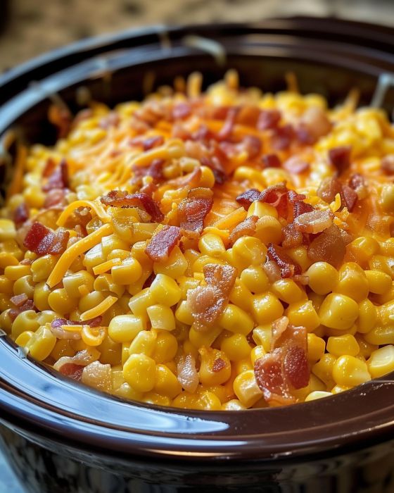 Slow Cooker Creamy Cheddar Corn with Bacon