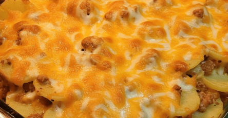Two minutes before the timer goes up, take the casserole dish out of the oven, spread the leftover shredded cheese evenly on the top of the casserole. Place it back in the oven and let the cheese melt and get a golden color.