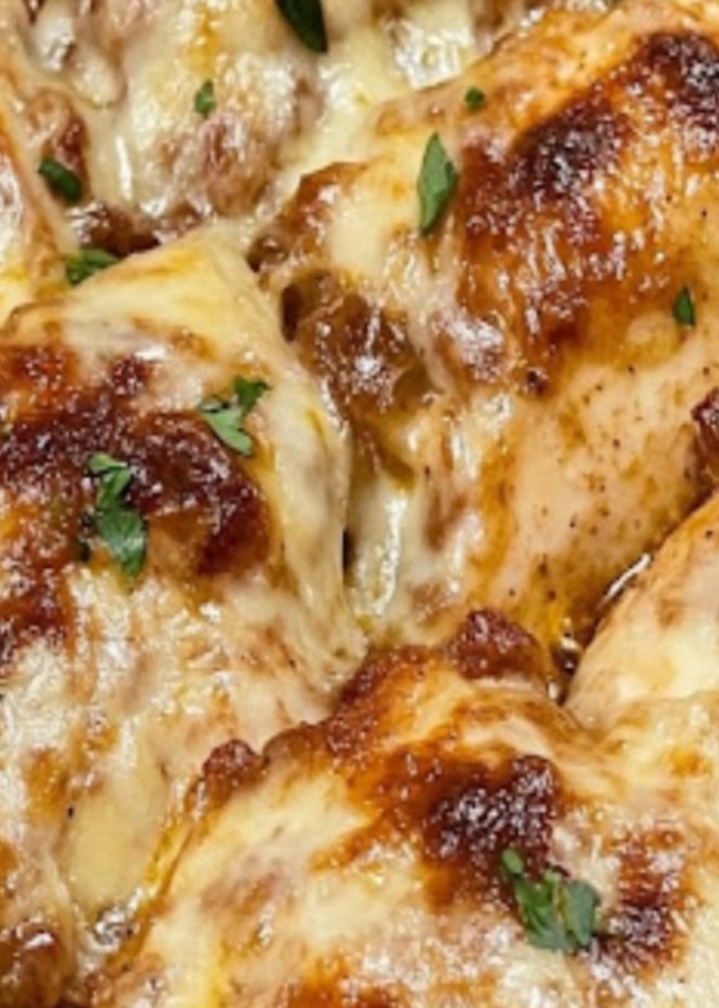 French onion soup has long been a beloved comfort food—silky caramelized onions, rich broth, melted cheese, and a deeply savory aroma that warms any kitchen. Now imagine those same flavors transforming tender, juicy chicken into a one-pan masterpiece. That is the magic of French Onion Chicken Bake, a dish that captures the elegance of French cuisine while keeping the preparation wonderfully simple.This recipe has surged in popularity because it offers the indulgence of classic French flavors without requiring hours in the kitchen. It’s hearty enough for weeknight dinners and impressive enough for guests.What Makes French Onion Chicken Bake So Special?1. Caramelized Onions Add Incredible DepthSlow-cooked onions form the heart of this recipe. As they caramelize, their natural sugars intensify, creating a sweet-savory base that coats every bite of chicken.2. Tender Chicken Baked to PerfectionUnlike pan-seared chicken, baking allows the flavors of the onions, broth, and seasoning to fully absorb into the meat. The result: moist, fork-tender chicken every time.3. Melted Cheese for the Perfect FinishThe dish is topped with melted mozzarella, gruyère, provolone, or Swiss. This choice of cheese gives the dish its signature French onion soup feel.4. Minimal Ingredients, Maximum FlavorYou only need a handful of pantry staples, yet the finished dish tastes like something from a restaurant.How to Make French Onion Chicken BakeBelow is a detailed, easy-to-follow recipe to bring this savory delight to your table.IngredientsFor the Onion Base3 large yellow onions, thinly sliced3 tablespoons butter1 tablespoon olive oil2 cloves garlic, minced1 teaspoon thyme (fresh or dried)½ teaspoon salt½ teaspoon black pepper1 cup beef broth1 teaspoon balsamic vinegar (optional, for richness)For the Chicken4–6 boneless skinless chicken breasts1 teaspoon paprika1 teaspoon onion powderSalt and pepper to taste1 tablespoon olive oilTopping1½–2 cups shredded mozzarella, provolone, Swiss, or gruyèreFresh parsley for garnish (optional)InstructionsPlease Head On keep on Reading (>) for the instructions:nstructions1. Caramelize the OnionsHeat butter and olive oil in a large skillet over medium heat.Add the sliced onions and season with salt, pepper, and thyme.Cook slowly—about 20–25 minutes—stirring often until the onions become soft, golden, and deeply caramelized.Add the garlic during the last minute of cooking.Pour in the beef broth and balsamic vinegar, allowing the mixture to simmer for another 3–4 minutes.Remove from heat.2. Prepare the ChickenPreheat your oven to 400°F (205°C).Rub chicken breasts with olive oil and season generously with paprika, onion powder, salt, and pepper.Lightly sear the chicken in a hot pan for 2–3 minutes per side to create flavor (optional but recommended).3. Assemble the BakeSpread the caramelized onions evenly in the bottom of a baking dish.Lay the seasoned chicken breasts on top.Spoon some of the onion mixture over each piece of chicken.Cover generously with shredded cheese.4. BakeBake uncovered for 25–30 minutes, or until the chicken reaches 165°F internally and the cheese is melted, golden, and bubbly.5. Garnish and ServeScatter fresh chopped parsley or thyme on top.Serve with mashed potatoes, roasted vegetables, rice, or a crisp green salad.Tips for the Best French Onion ChickenDon’t rush the onions—true caramelization takes time.Use beef broth, not chicken broth, for the signature French onion flavor.Pound thick chicken breasts to even thickness for consistent cooking.Gruyère cheese offers the most authentic French onion soup taste.Why You’ll Love This DishFrench Onion Chicken Bake is the perfect blend of comfort food and gourmet flavors. It transforms simple ingredients into a rich, fragrant, cheesy, and heartwarming meal. Once you make it, it’s almost guaranteed to become a regular in your household.