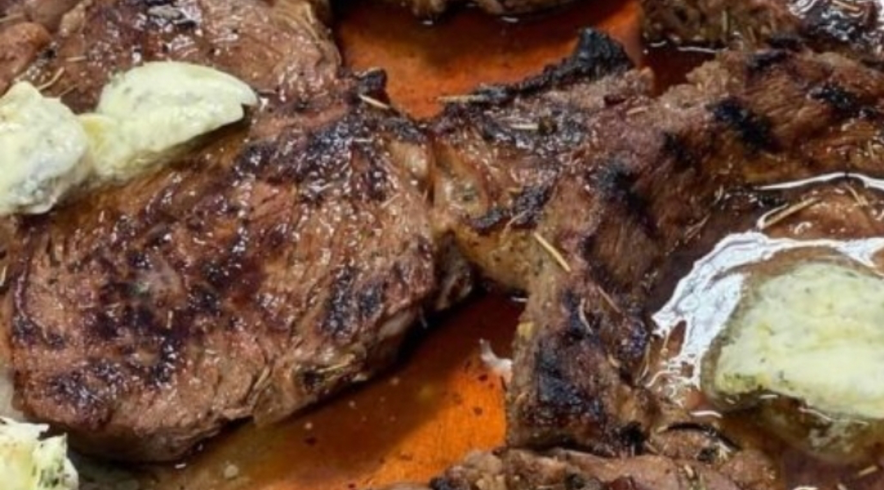 - Ingredients– For the Steaks:– 4 ribeye steaks (about 1-inch thick)– Salt– Black pepper– Olive oil– For the Herb Butter:– 1/2 cup unsalted butter, softened– 2 cloves garlic, minced– 1 tablespoon fresh parsley, finely chopped– 1 tablespoon fresh thyme, finely chopped– 1 teaspoon lemon zest– Salt and black pepper to tastePreparationPrepare the Herb Butter:– In a small bowl, combine the softened butter, minced garlic, parsley, thyme, lemon zest, salt, and black pepper. Mix well until all ingredients are evenly distributed.– Place the butter mixture on a piece of plastic wrap and roll it into a log shape. Twist the ends to seal it tightly.– Refrigerate the herb butter log for at least 30 minutes to allow it to firm up.Prepare the Steaks:– Remove the steaks from the refrigerator and let them come to room temperature for about 30 minutes before cooking.– Preheat your grill to high heat.– Brush both sides of the steaks with olive oil and season generously with salt and black pepper.Grill the Steaks:– Place the steaks on the preheated grill and cook for about 4-5 minutes per side for medium-rare, or to your desired level of doneness.– Use a meat thermometer to check the internal temperature (130°F for medium-rare, 140°F for medium, and 160°F for well-done).Finish with Herb Butter:– Once the steaks are done, remove them from the grill and let them rest for 5 minutes.– Slice the herb butter log into rounds and place a round on each steak while they rest. The butter will melt and create a flavorful sauce.Serve:– Serve the steaks hot with your favorite sides.Enjoy your delicious grilled ribeye steaks with herb butter!