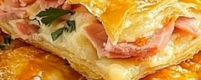 Ingredients:1 sheet of puff pastry (thawed if frozen)200g cooked ham or turkey (cubed or chopped)150g shredded cheese (mozzarella or cheddar)2 tablespoons cream cheese or herbed spread (like garlic & parsley)1 egg (for egg wash)Fresh parsley (optional, for garnish)🥣 Optional herb spread:1 tablespoon butter (softened)1 clove garlic (minced)Fresh chopped parsley or dillSalt & pepper👩‍🍳 Instructions:Preheat Oven:Preheat your oven to 200°C (390°F).Prepare the Spread (optional):Mix butter, garlic, herbs, salt, and pepper to create a flavorful spread. You can also use store-bought garlic & herb cheese.Assemble the Roll:Roll out the puff pastry on a clean surface.Spread the herb or cream cheese mixture evenly across the pastry.Evenly scatter the ham and shredded cheese over the top.Roll It Up:Carefully roll the pastry sheet into a log, starting from one end (like shown in the top image).Slice the roll into 5–6 pieces (like pinwheels or squares if flattening slightly).Bake:Place them on a baking tray lined with parchment paper.Brush the tops with beaten egg for a golden color.Bake for 20–25 minutes or until puffed and golden brown.Serve:Garnish with fresh parsley and serve warm with garlic yogurt sauce or a dip of your choice.🍽️ Tip:These rolls are perfect for breakfast, brunch, parties, or even lunchboxes. You can substitute the filling with cooked chicken, sautéed mushrooms, or even spinach & feta.Let me know if you want a vegetarian version too!Enjoy!