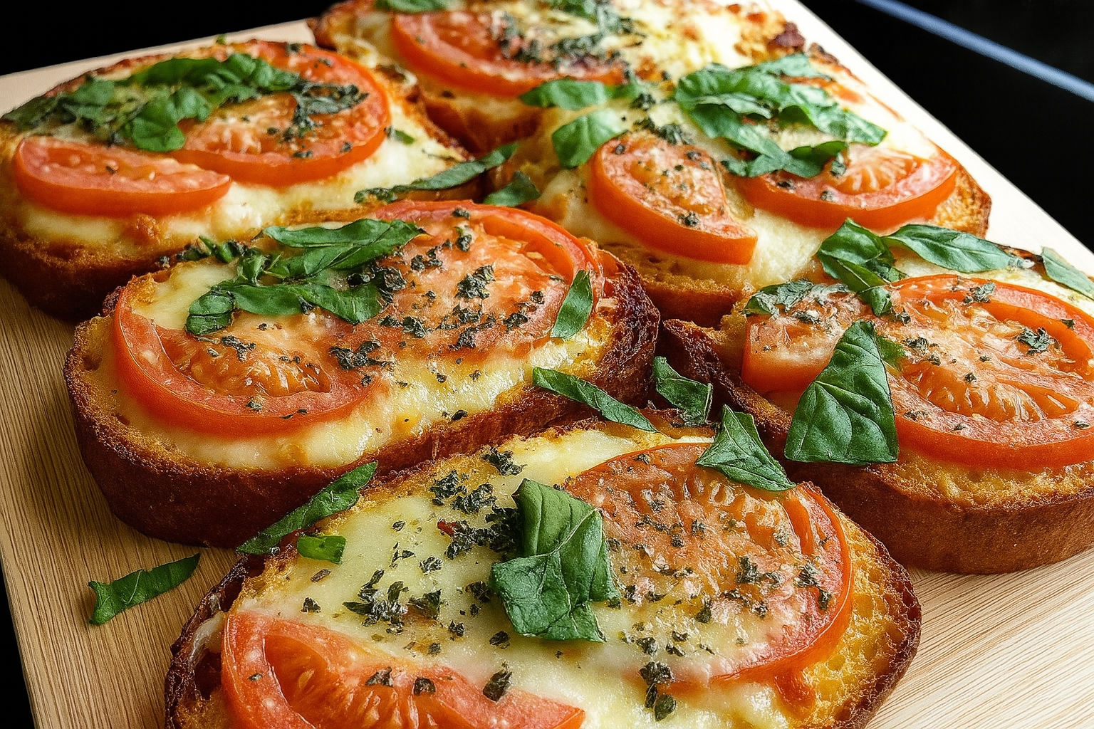 It’s the kind of recipe that feels rustic, homemade, and vibrant — combining toasted bread with garlic-infused olive oil, juicy tomato slices, fresh basil, and just a touch of oregano. If you’ve ever tasted a Caprese-style flatbread or Italian bruschetta, this is its toasted cousin.