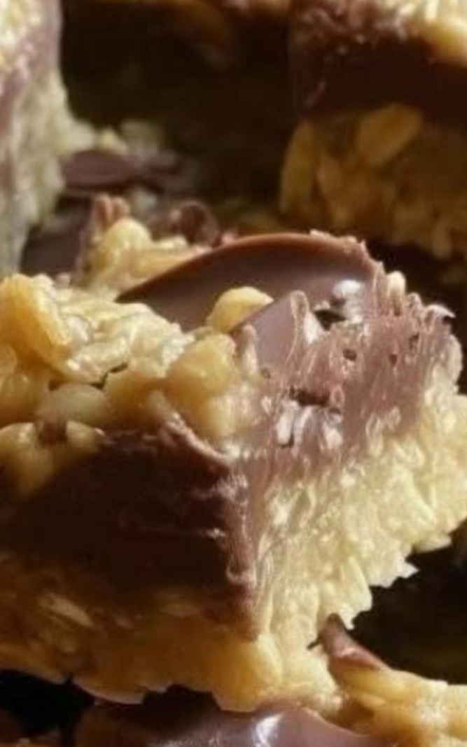 Crumble the remaining oat mixture over the chocolate layer, pressing in gently.
