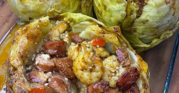 Viral Cabbage Boil with Sausage, Shrimp, and Bacon Ingredients 3 small green cabbages (outer leaves removed, cores trimmed out) 1…