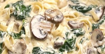 Slow Cooker Spinach and Mushroom Pasta Alfredo