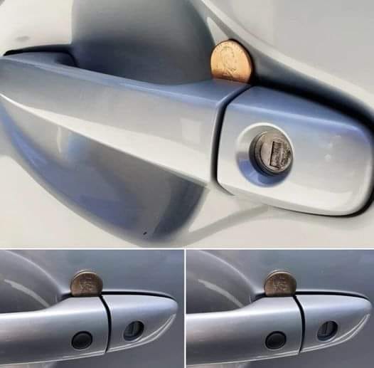 Des voleurs utilisent parfois des pièces de un centime ou similaires pour bloquer mécaniquement le mécanisme de la poignée, notamment :