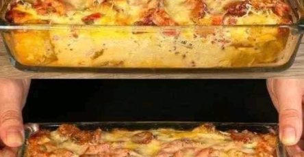 - Slowly pour the cream mixture over the onions and sprinkle with the parmesan cheese