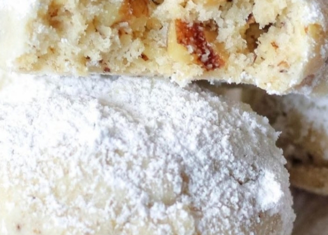 Tender and buttery, these Russian Tea Balls are delicious. They literally melt in your mouth. Filled with chopped walnuts, there is a nice crunch. The cookie itself isn’t overly sweet. Generously dusting them with powdered sugar adds just the right amount of sweetness. Some may know these as snowball cookies or Mexican wedding cookies. We agree with Terry that they’re a must-make at Christmas. The recipe makes a lot of cookies that can be given as gifts.Ingredients2 c butter, softened4 c all-purpose flour4 c walnuts, chopped1 c granulated sugar4 tsp vanilla extract1 tsp saltpowdered sugar for rollingHow to Make Russian Tea Balls1. Cream the butter, sugar, and vanilla until fluffy and light.2. Mix together flour and salt.3. Add flour mixture to the creamed mixture a little at a time.4. Stir in the nuts.5. Shape into 1″ balls and place 1 1/2″ apart on a cookie sheet.6. Bake for 20 min at 325 degrees.7. Cool on a cooling rack. Then roll in powdered sugar.