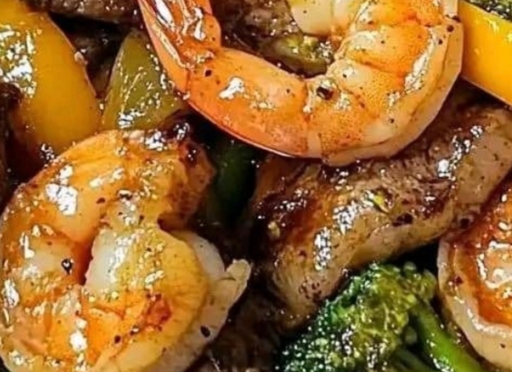 - Enjoy your sizzling, garlicky surf & turf stir-fry!