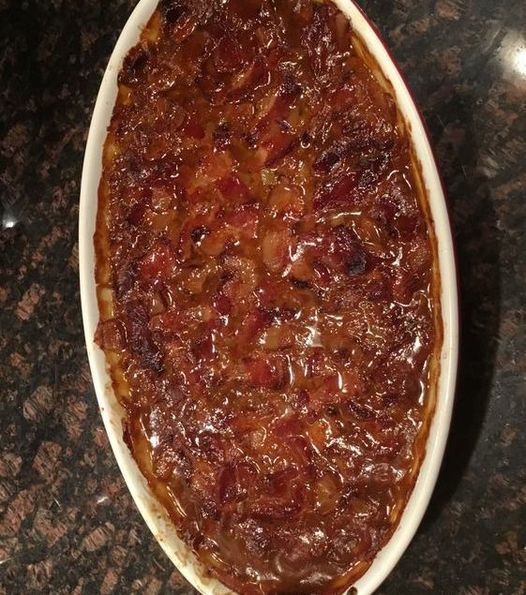4. Place bacon slices evenly over top of beans. Baked uncovered for 60-90 minutes or until bacon is crispy and cooked through. Serve warm.