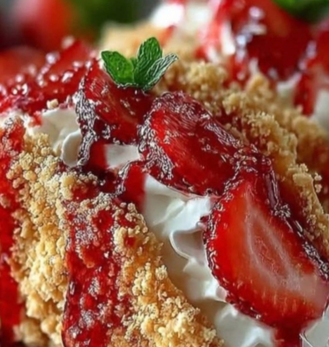 Preparation TimePrep Time: 25 minutesCook Time: 10 minutesChill Time: 30 minutesTotal Time: ~1 hour 5 minutes IngredientsHere’s everything you’ll need to make about 10–12 cheesecake tacos.For the Taco Shells10–12 small flour tortillas (street taco size works best)½ cup granulated sugar1 teaspoon cinnamon¼ cup unsalted butter, meltedFor the Cheesecake Filling8 oz cream cheese (softened)1 cup heavy whipping cream¾ cup powdered sugar1 teaspoon vanilla extractFor the Strawberry Crunch Topping20 Golden Oreo cookies (crushed)2 tablespoons unsalted butter, melted1 package (3 oz) strawberry gelatin powder (Jell-O or similar)For the Strawberry Layer1 ½ cups fresh strawberries (diced)2 tablespoons granulated sugar InstructionsStep 1: Prepare the Taco ShellsPreheat the oven to 375°F (190°C).Mix the sugar and cinnamon in a shallow bowl.Brush each tortilla lightly with melted butter on both sides.Dredge each tortilla in the cinnamon-sugar mixture until coated.Flip a muffin tin upside down. Tuck each tortilla between the cups to form a taco shell shape.Bake for 8–10 minutes until golden brown and crispy. Let cool completely before filling.Step 2: Make the Strawberry CrunchCrush the Golden Oreos into fine crumbs (a food processor or ziplock bag + rolling pin works).Mix the crumbs with melted butter and strawberry gelatin powder until evenly combined.Spread onto a baking sheet and bake for 5 minutes at 350°F (175°C) to set. Let cool.Step 3: Prepare the Cheesecake FillingBeat the softened cream cheese until smooth.Add powdered sugar and vanilla extract, beating until creamy.In a separate bowl, whip heavy cream until stiff peaks form.Gently fold whipped cream into the cream cheese mixture until fluffy.Transfer filling into a piping bag for easy assembly.Step 4: Prepare the StrawberriesDice the strawberries into small pieces.Toss them with sugar and let sit for 10 minutes to release juices (this creates a sweet strawberry syrup).Step 5: Assemble the Cheesecake TacosPipe cheesecake filling into each cooled taco shell.Spoon strawberries on top.Sprinkle generously with strawberry crunch topping.Optional: drizzle with white chocolate or strawberry sauce for extra indulgence. Tips for SuccessMake Ahead: You can prepare the shells, filling, and crunch a day in advance. Assemble just before serving for the crispiest results.Shell Alternatives: Use graham crackers or waffle cones shaped like tacos if you prefer a no-bake option.Flavor Variations: Try other gelatin flavors (raspberry, cherry, or even lemon) for different crunch toppings.Extra Creamy Filling: Add a tablespoon of sour cream for a tangier cheesecake flavor.Storage: Store filled tacos in the fridge for up to 24 hours, but the shells will soften. For best texture, store components separately. How to ServeThese cheesecake tacos are perfect for:Dessert tables at parties.Summer BBQs as a refreshing sweet treat.Holiday gatherings (decorate with themed sprinkles).Romantic date nights—a playful twist on strawberries & cream.Serve chilled with a cup of coffee, a glass of champagne, or even a scoop of vanilla ice cream on the side. Calories & Nutrition (per taco, approx.)Calories: ~280 kcalCarbohydrates: 32 gProtein: 4 gFat: 16 gSugar: 21 gFiber: 1 gNote: Nutrition may vary based on tortilla size and toppings used. Final ThoughtsStrawberry Crunch Cheesecake Tacos are proof that desserts don’t have to be complicated to be impressive. With their crispy cinnamon-sugar shells, creamy cheesecake filling, juicy strawberries, and nostalgic strawberry crunch topping, they strike the perfect balance of sweet, creamy, fruity, and crunchy.Whether you’re making them for kids, friends, or just to treat yourself, these tacos will put a smile on everyone’s face. And the best part? You can mix and match flavors endlessly—think Oreo Crunch Tacos, Blueberry Cheesecake Tacos, or even Chocolate Peanut Butter Cheesecake Tacos.If you’re looking for a show-stopping dessert that’s as fun to make as it is to eat, this recipe is a must-try.